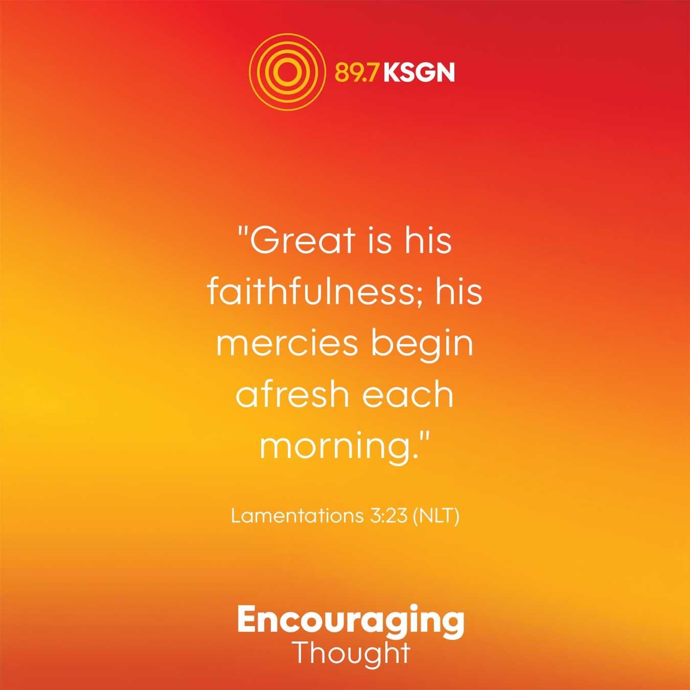 "Great is his faithfulness; his mercies begin afresh each morning."