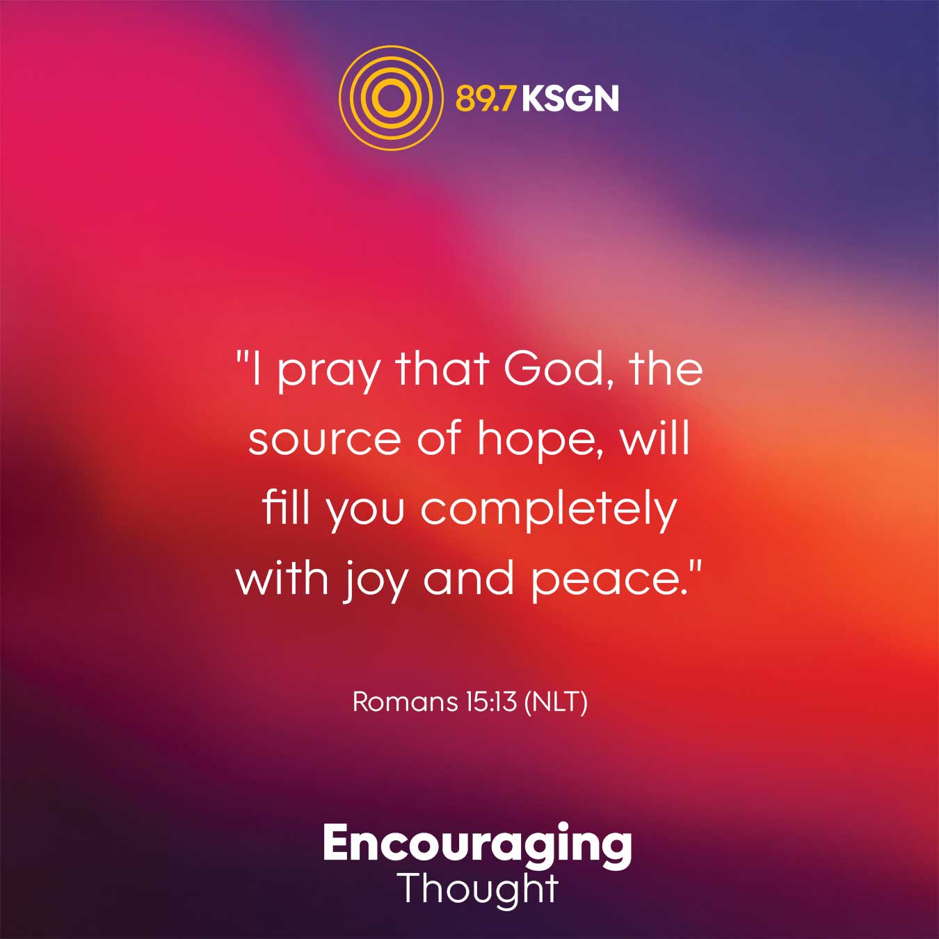 Encouraging Thought is not available via SMS text message at this time. Please subscribe via email, follow @ksgn on Twitter, follow the 89.7 KSGN Facebook page, or bookmark the Encouraging Thought webpage.
