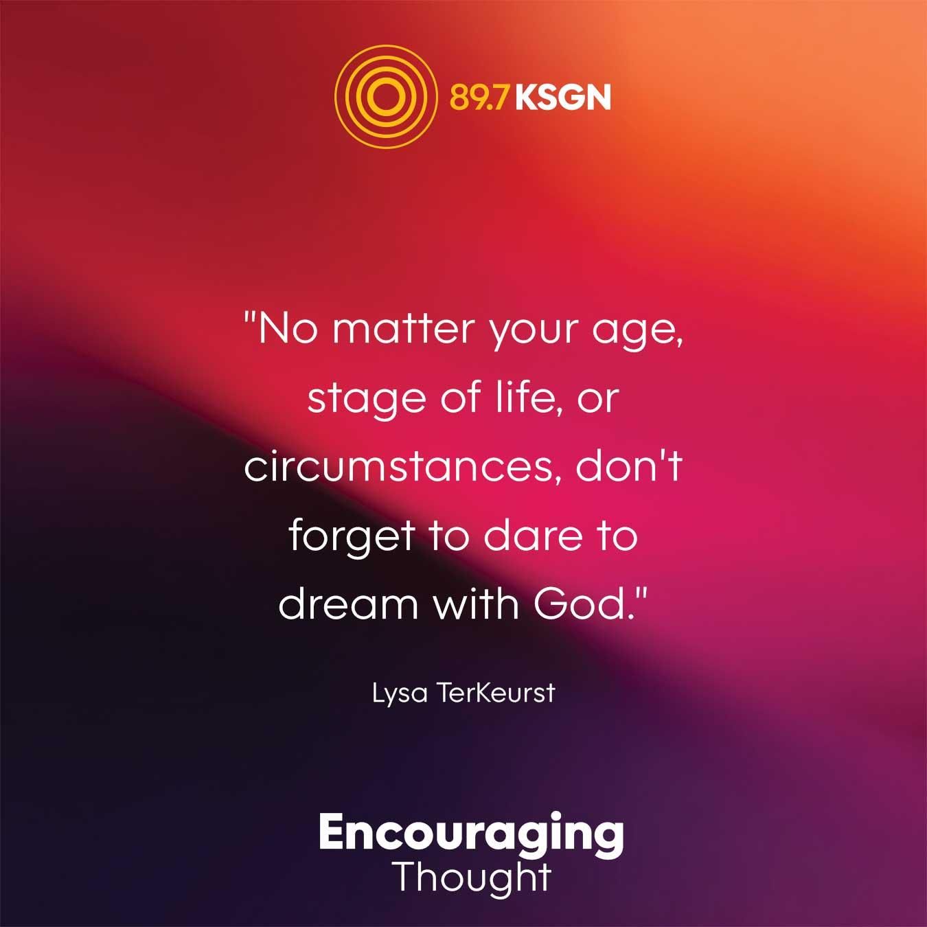 "No matter your age, stage of life, or circumstances, don't forget to dare to dream with God."