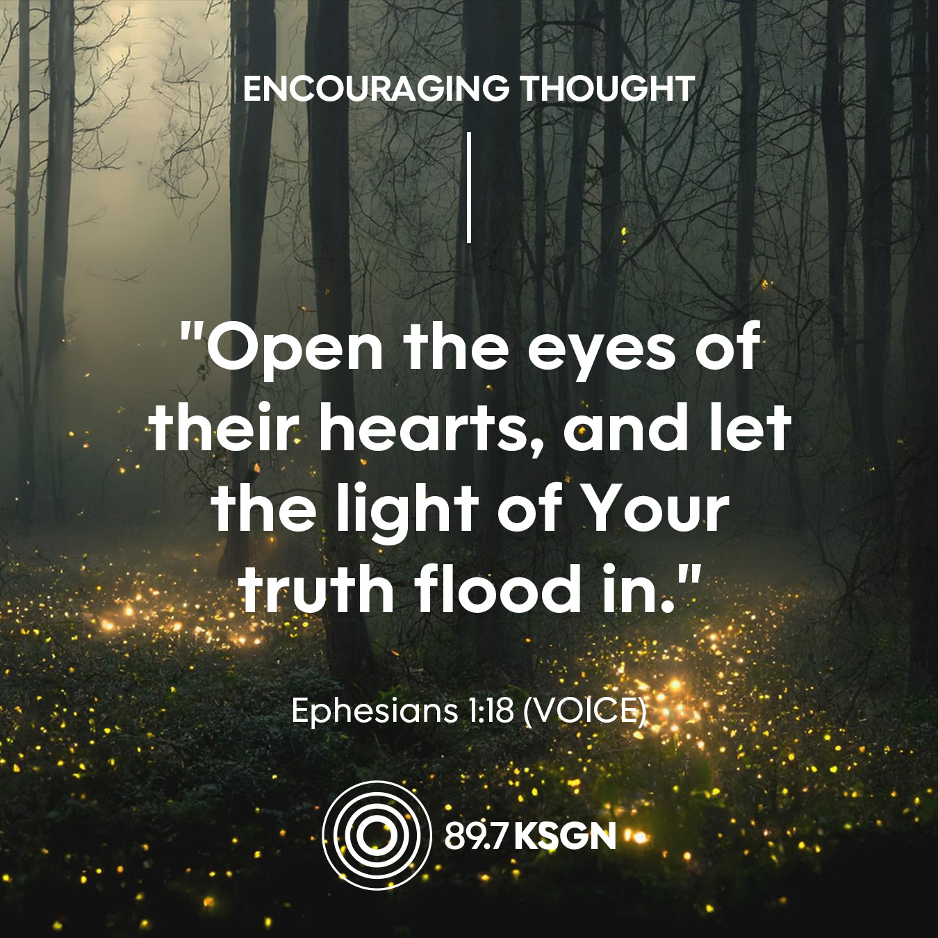 "Open the eyes of their hearts, and let the light of Your truth flood in. Shine Your light on the hope You are calling them to embrace. Reveal to them the glorious riches You are preparing as their inheritance."