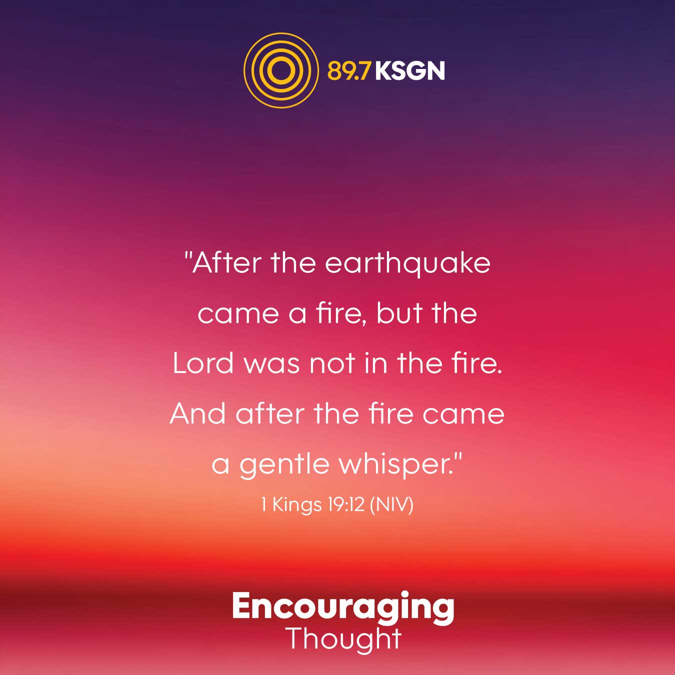 "After the earthquake came a fire, but the Lord was not in the fire. And after the fire came a gentle whisper."