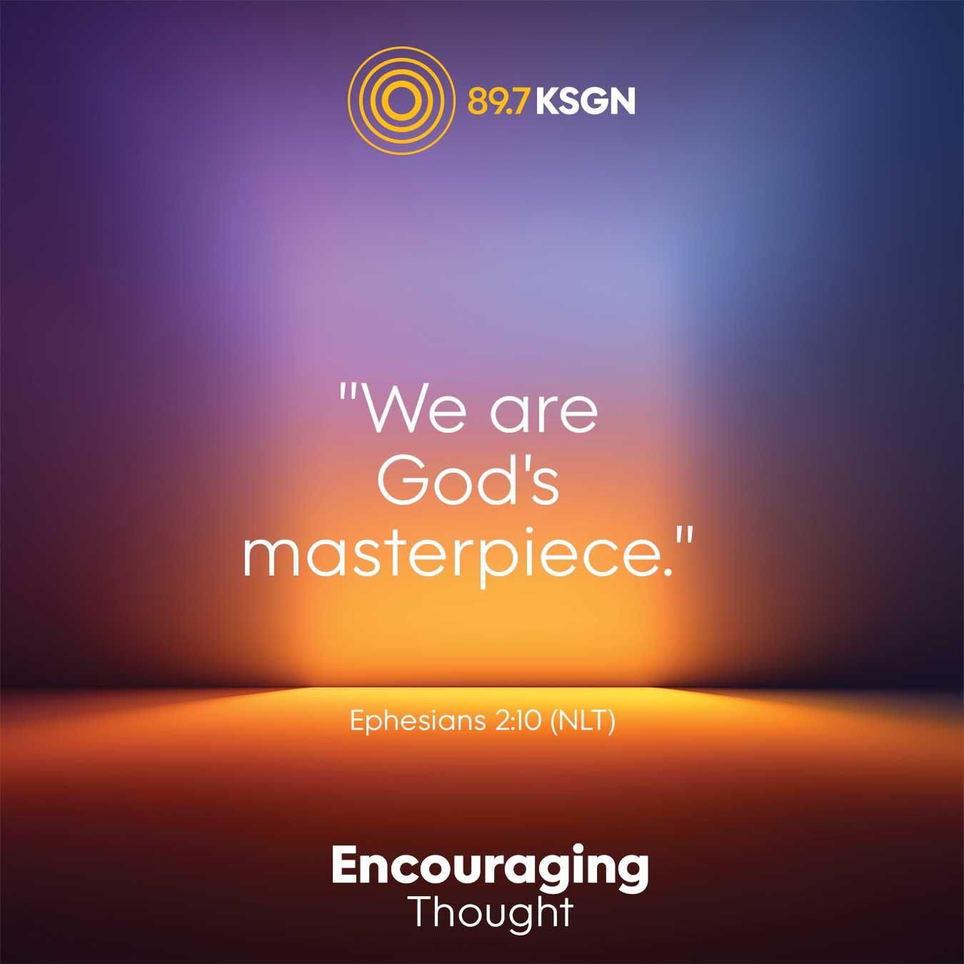 "For we are God's masterpiece. He has created us anew in Christ Jesus, so we can do the good things he planned for us long ago."