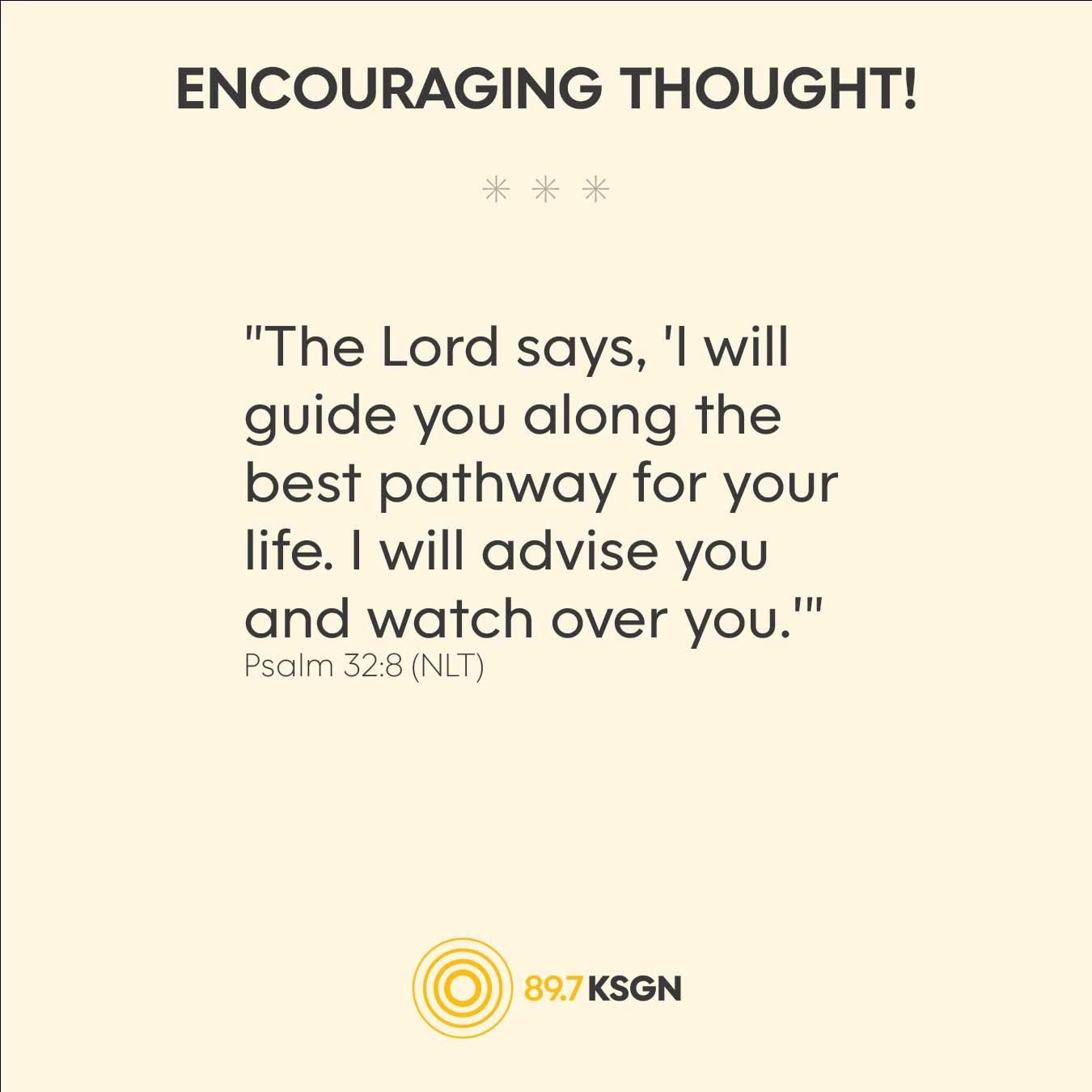 "The Lord says, 'I will guide you along the best pathway for your life. I will advise you and watch over you.'"