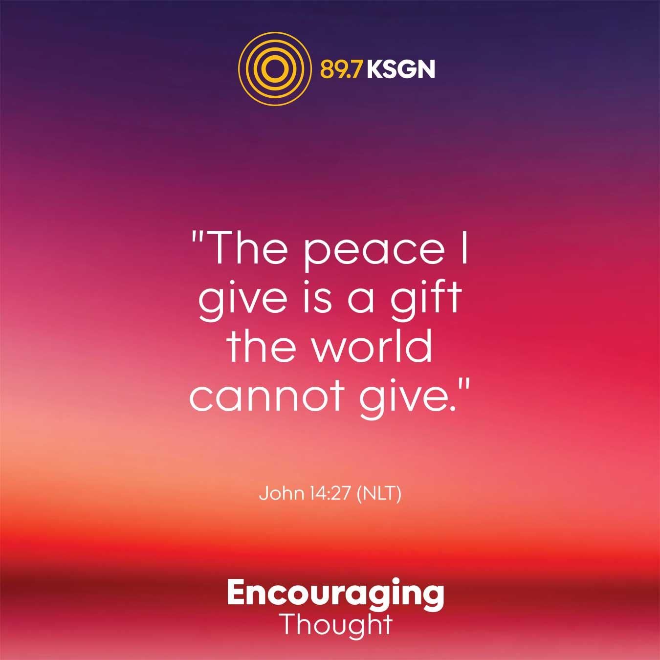 "The peace I give is a gift the world cannot give." John 14:27 (NLT)