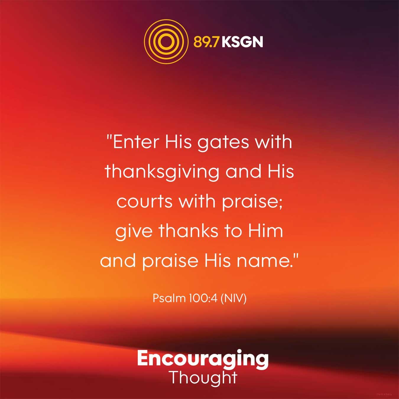 "Enter His gates with thanksgiving and His courts with praise; give thanks to Him and praise His name."