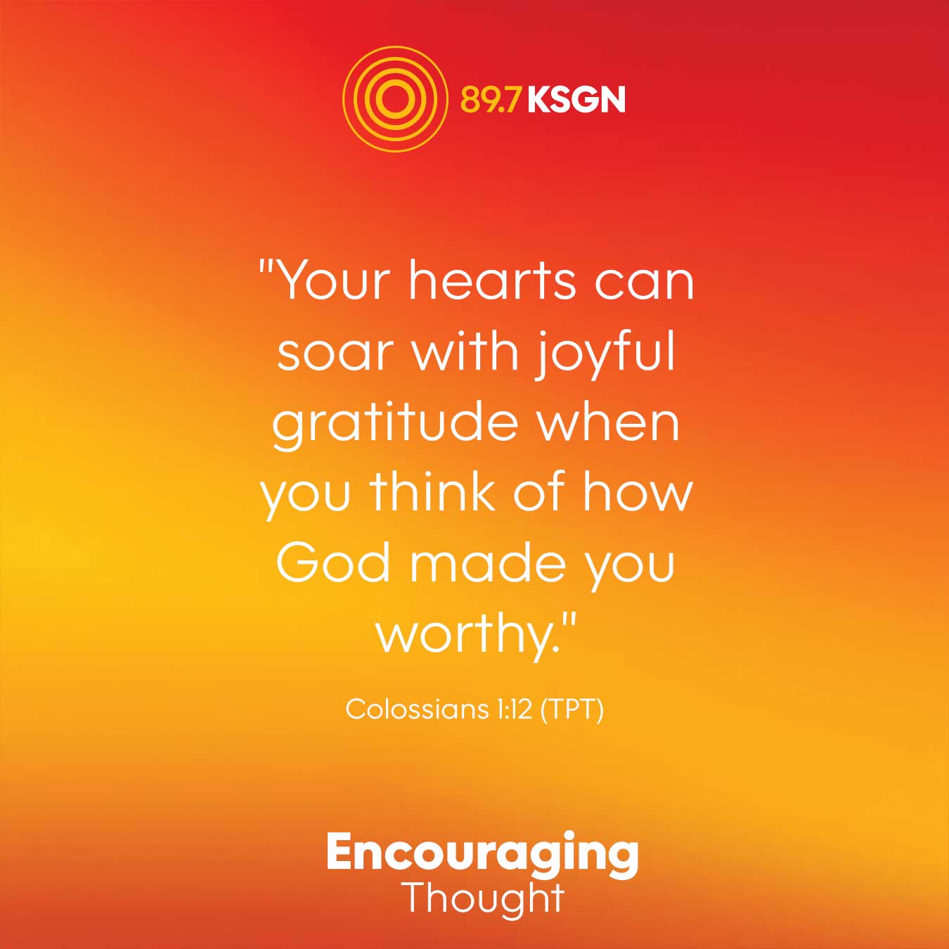 "Your hearts can soar with joyful gratitude when you think of how God made you worthy."