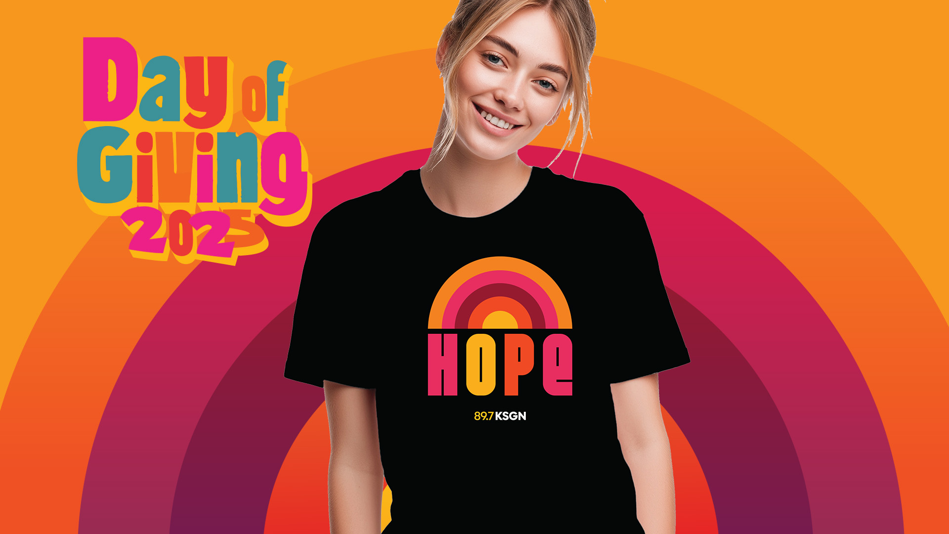 Imagine slipping on a T-shirt that not only looks great but also carries a message of hope everywhere you go. That’s exactly what you’ll get when you step up with a new monthly gift of $40 or more to 89.7 KSGN - you’ll receive our exclusive HOPE T-shirt as a thank-you!